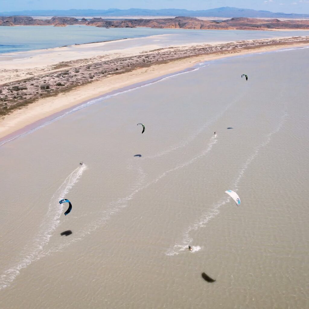 A remote desert beach where flat-water lagoons meet strong winds. Early sessions in the salty lagoon, afternoons chasing wind on empty beaches.